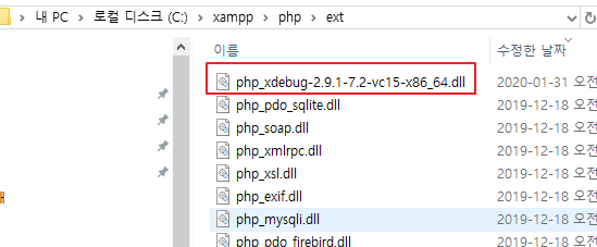 7. 위의 내용에서 1번의 녹색 글자 링크를 클릭하여 dll파일을 다운로드하여서 3번의 내용대로 xampp를 설치한 경로에서 php> ext폴더 아래에 넣습니다.
